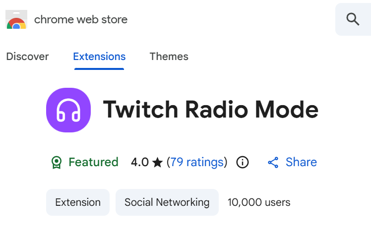 2. Typ ‘Twitch Radio Mode’ in de zoekbalk.