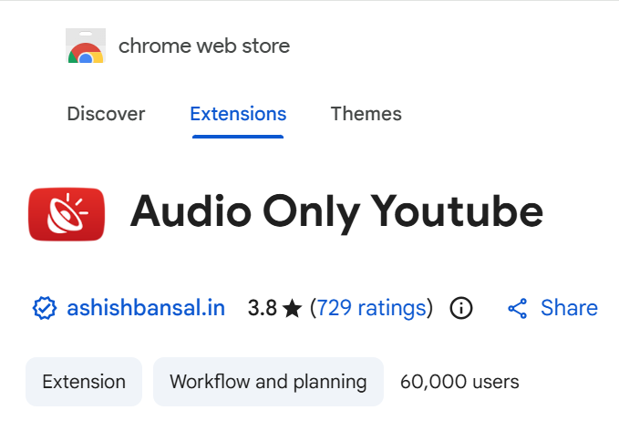 2. Zoek naar ‘audio only for youtube’.